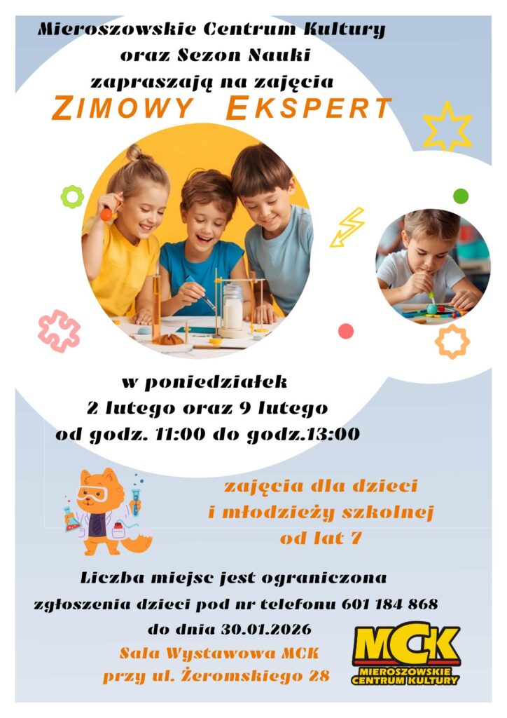 Zapraszamy serdecznie wszystkie dzieci w wieku szkolnym na zajęcia Zimowy Ekspert❄.